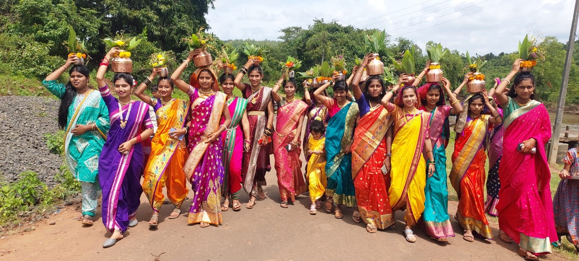 | गडहिंग्लज विभागात गौराईला सजवून घरी आणताना सुवासिनी व युवती |